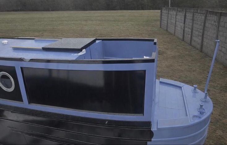 The boat is professionally finished in 2K paint, painted in an elegant Pigeon Blue with modern black detailing, giving a smart, contemporary exterior. It benefits from double-glazed portholes throughout, providing excellent insulation and natural light.
